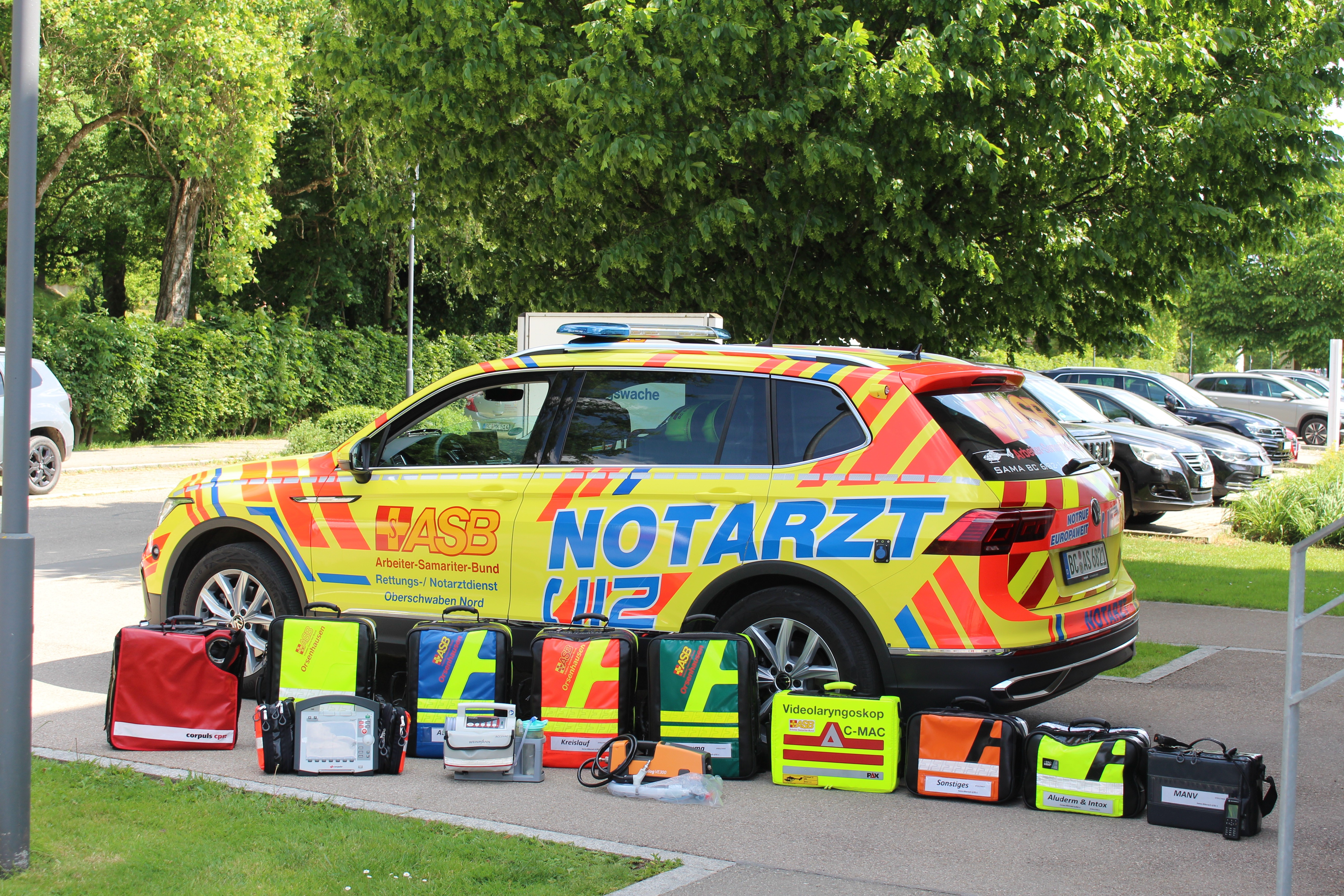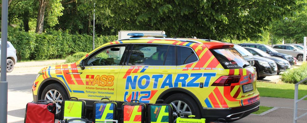Notarzteinsatzfahrzeug mit Rucksäcken